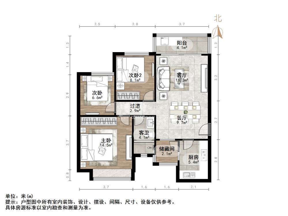 朝向南北 建筑面积102㎡