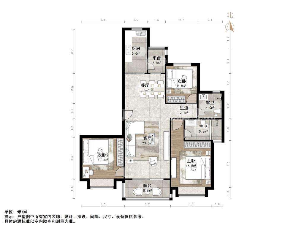厅室3室2厅2卫1阳台