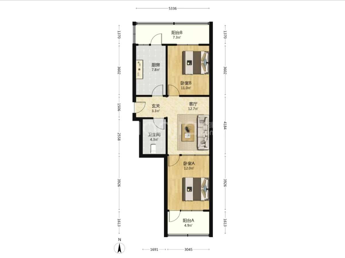 厅室2室1厅1卫1阳台