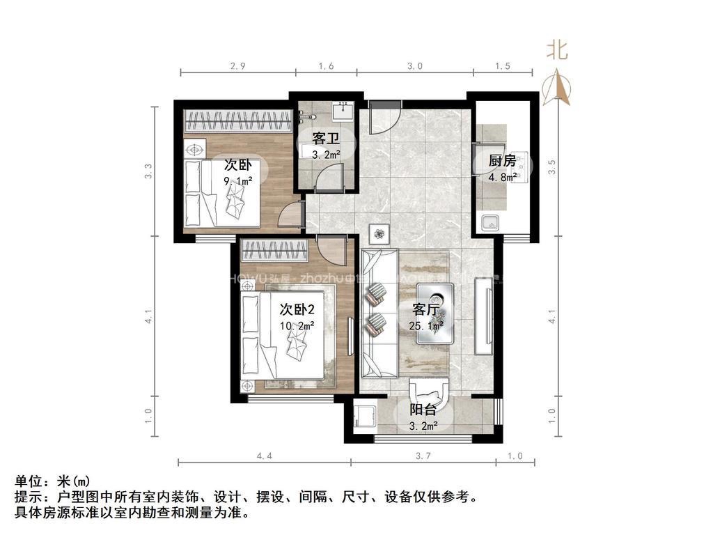厅室2室2厅1卫1阳台