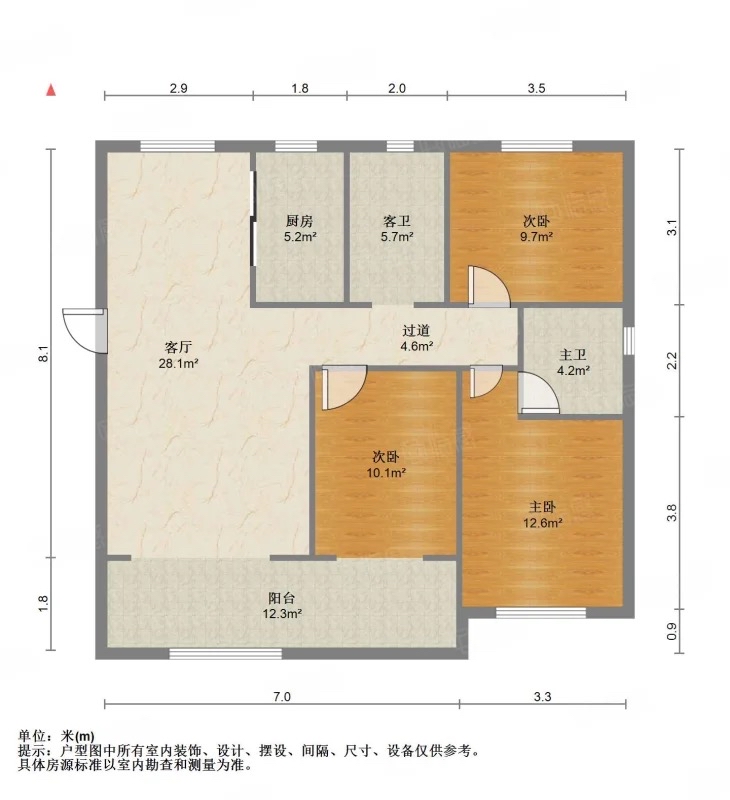 厅室3室2厅2卫1阳台