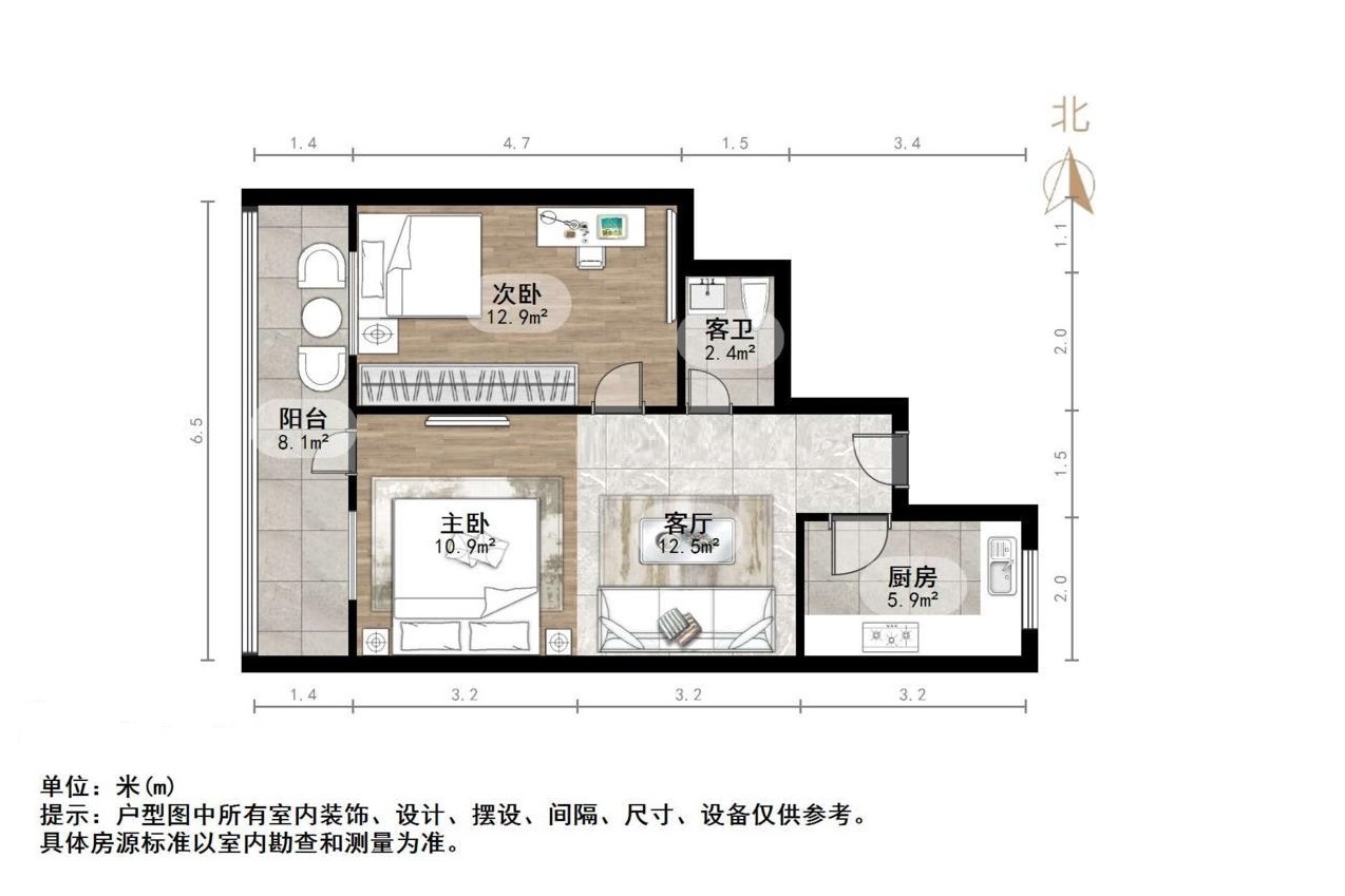 厅室2室1厅1卫1阳台
