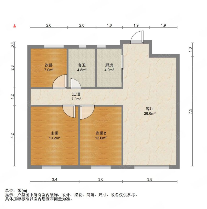厅室3室2厅2卫1阳台