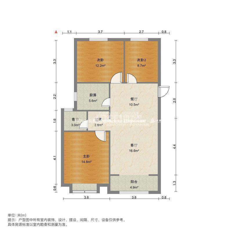 厅室3室2厅1卫0阳台
