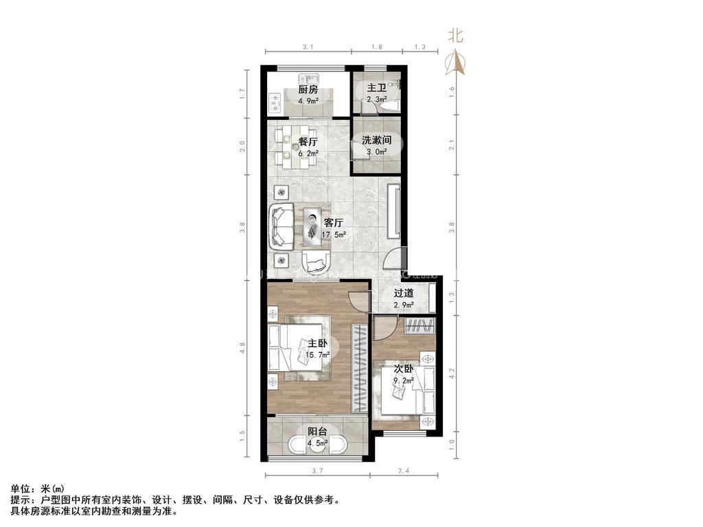 朝向南北 建筑面积80㎡