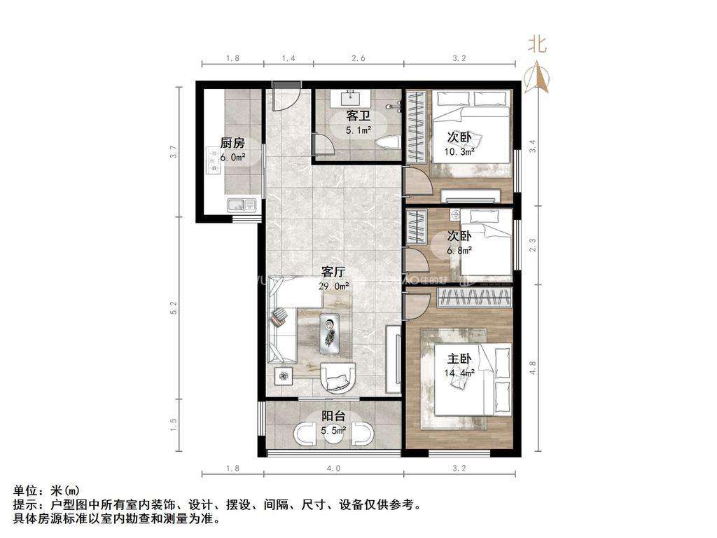 朝向南 建筑面积98.1㎡