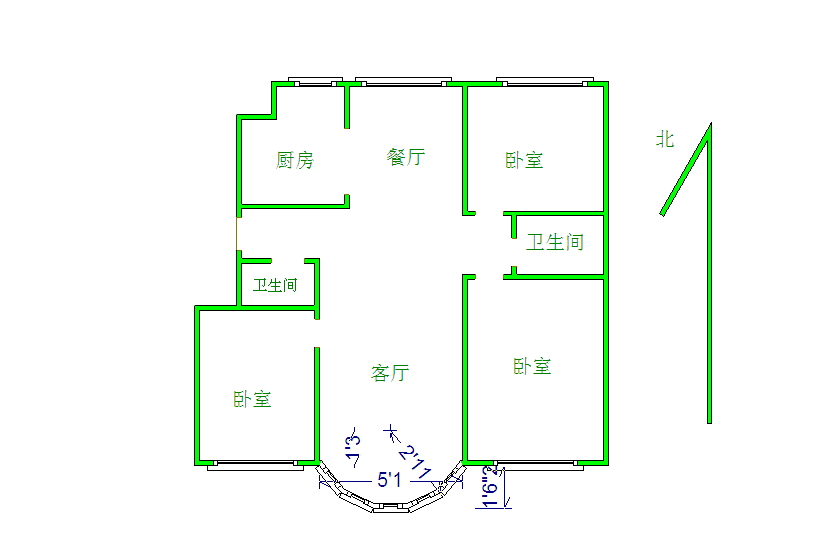 厅室3室2厅2卫1阳台