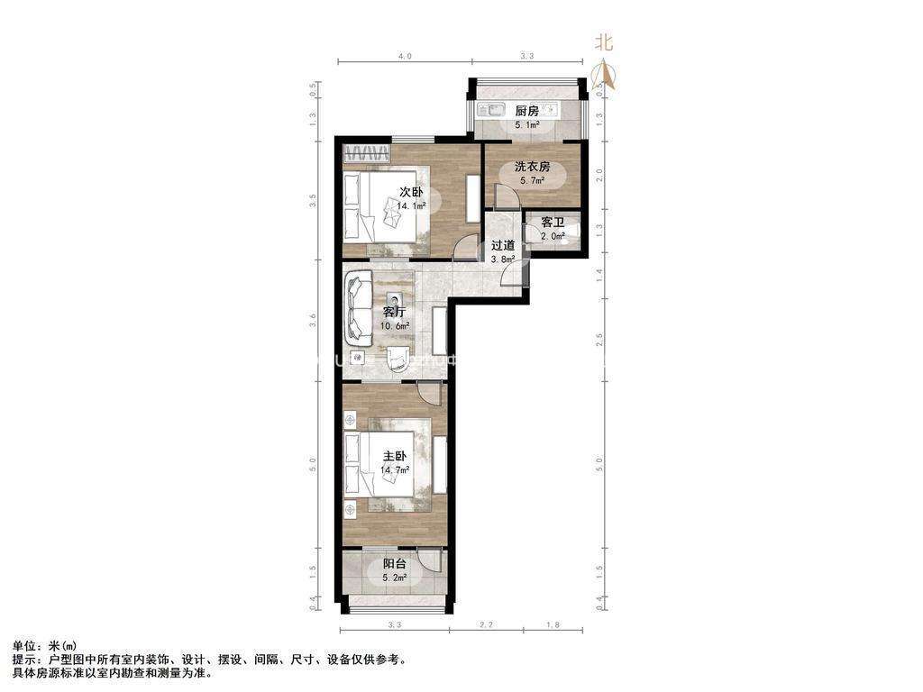 厅室2室1厅1卫1阳台