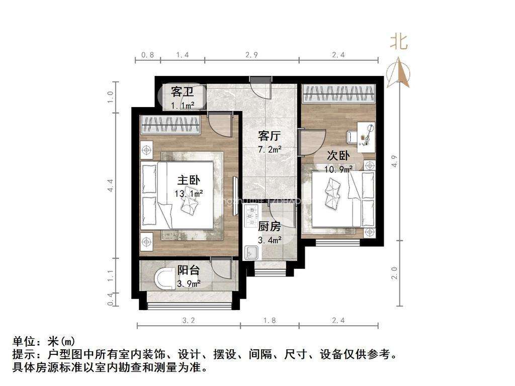 厅室2室1厅1卫1阳台