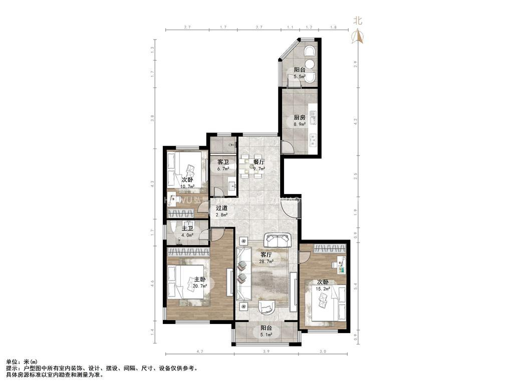 厅室3室2厅2卫2阳台