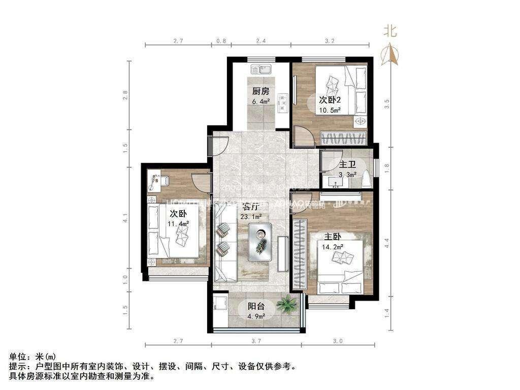 朝向南北 建筑面积108㎡