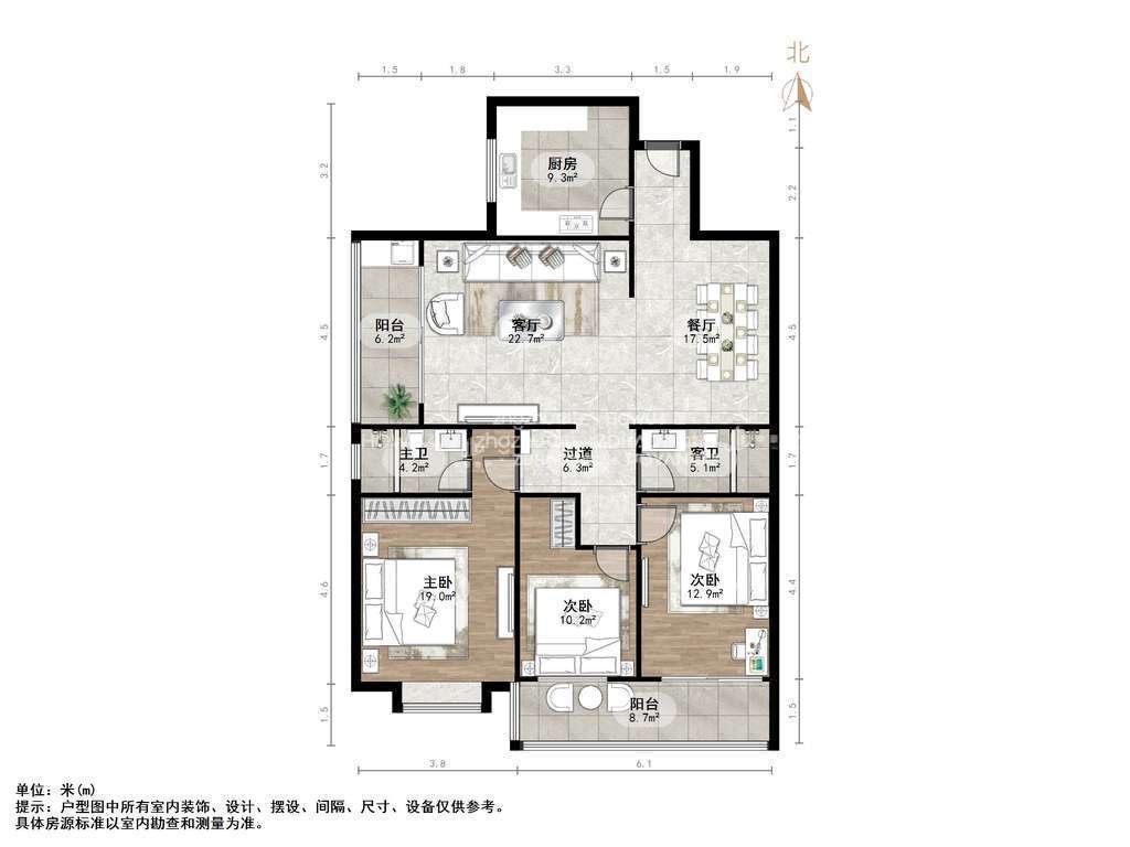 厅室3室2厅2卫2阳台