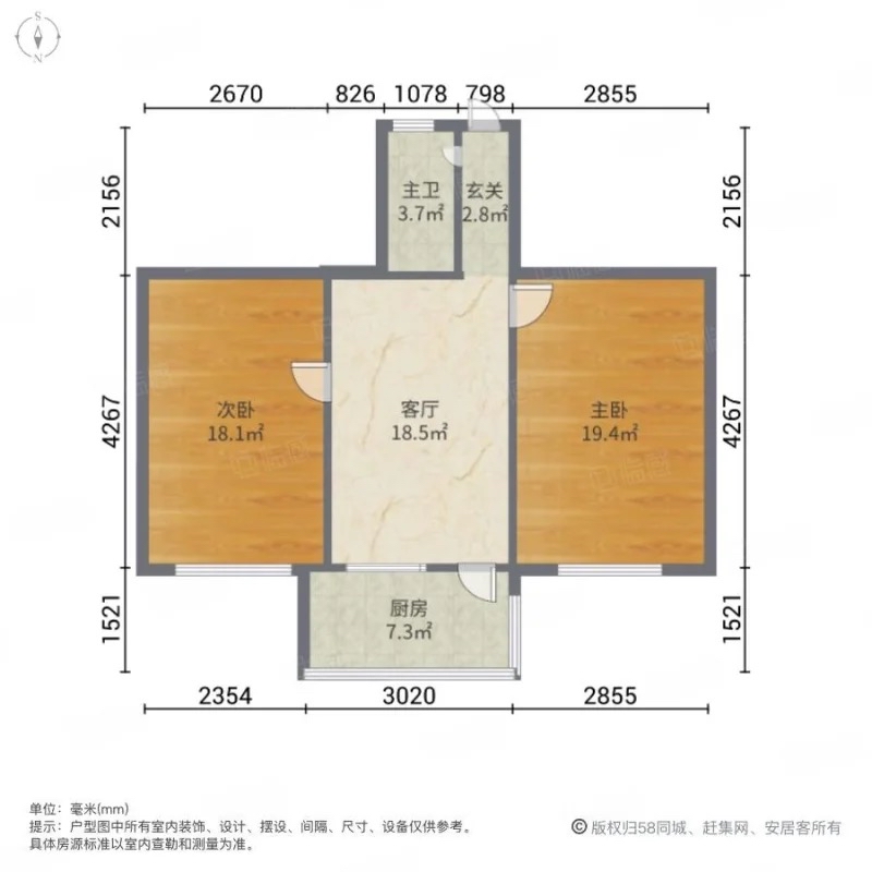朝向南北 建筑面积62㎡