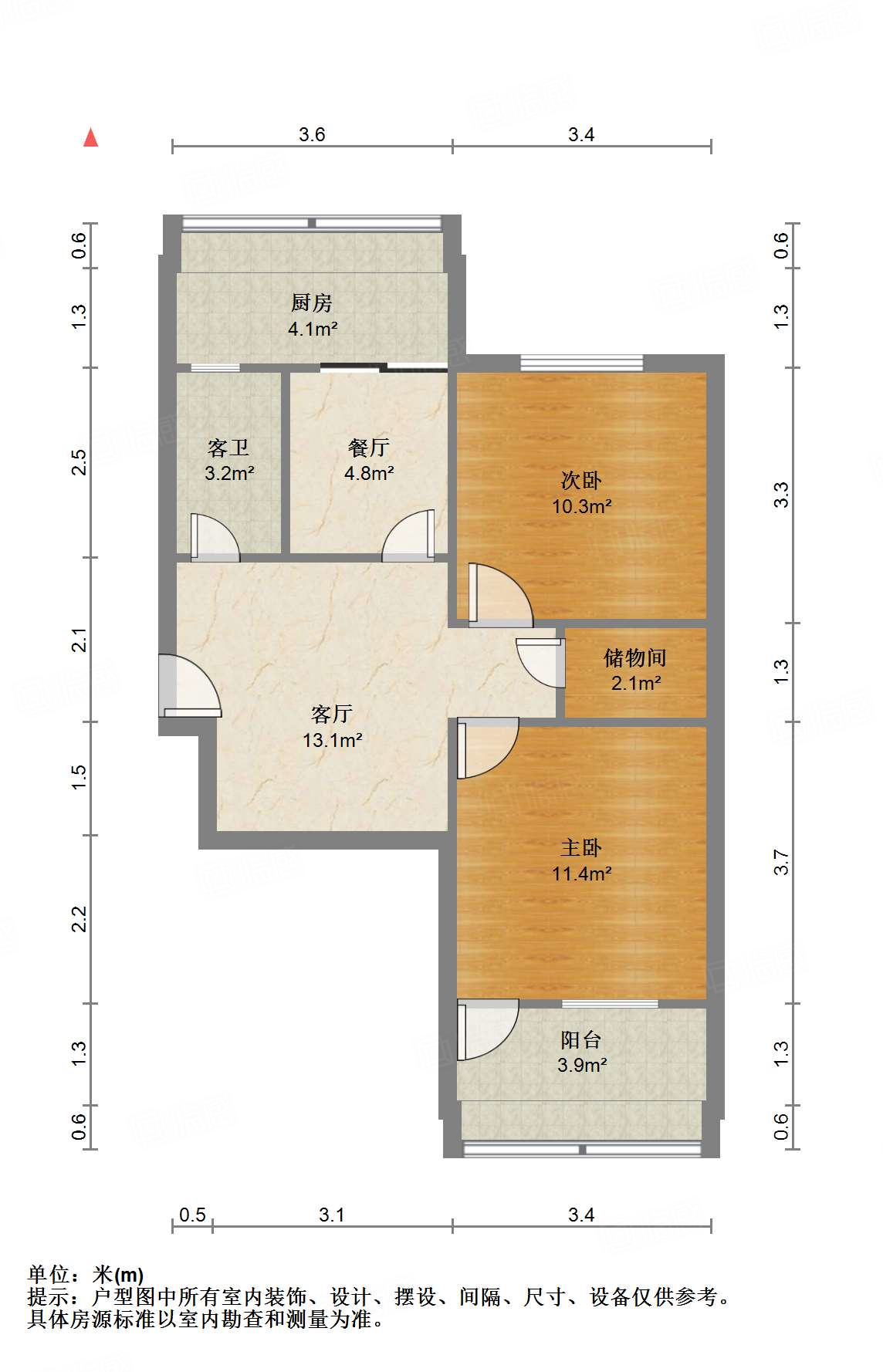 朝向南北 建筑面积65㎡