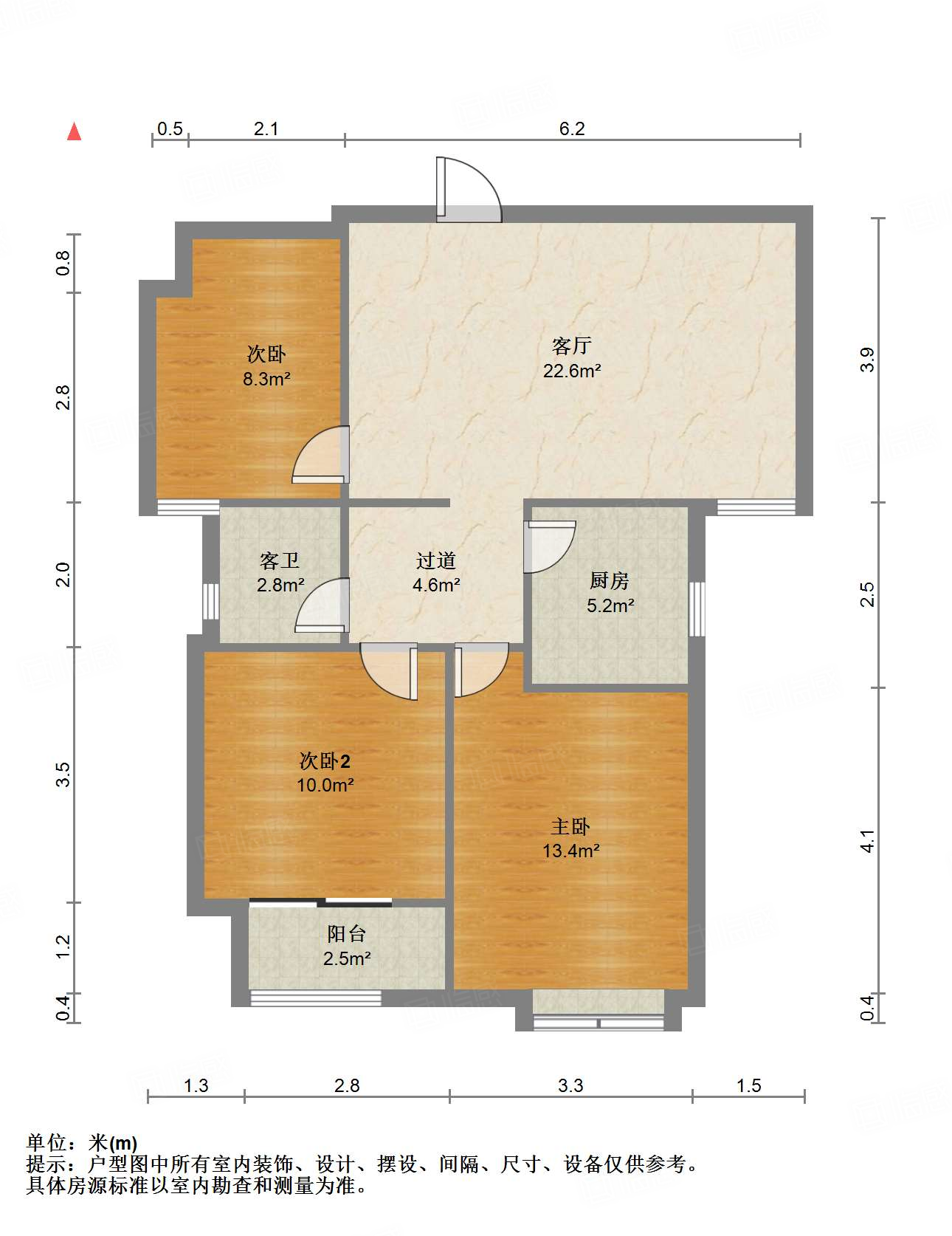 厅室3室2厅1卫1阳台