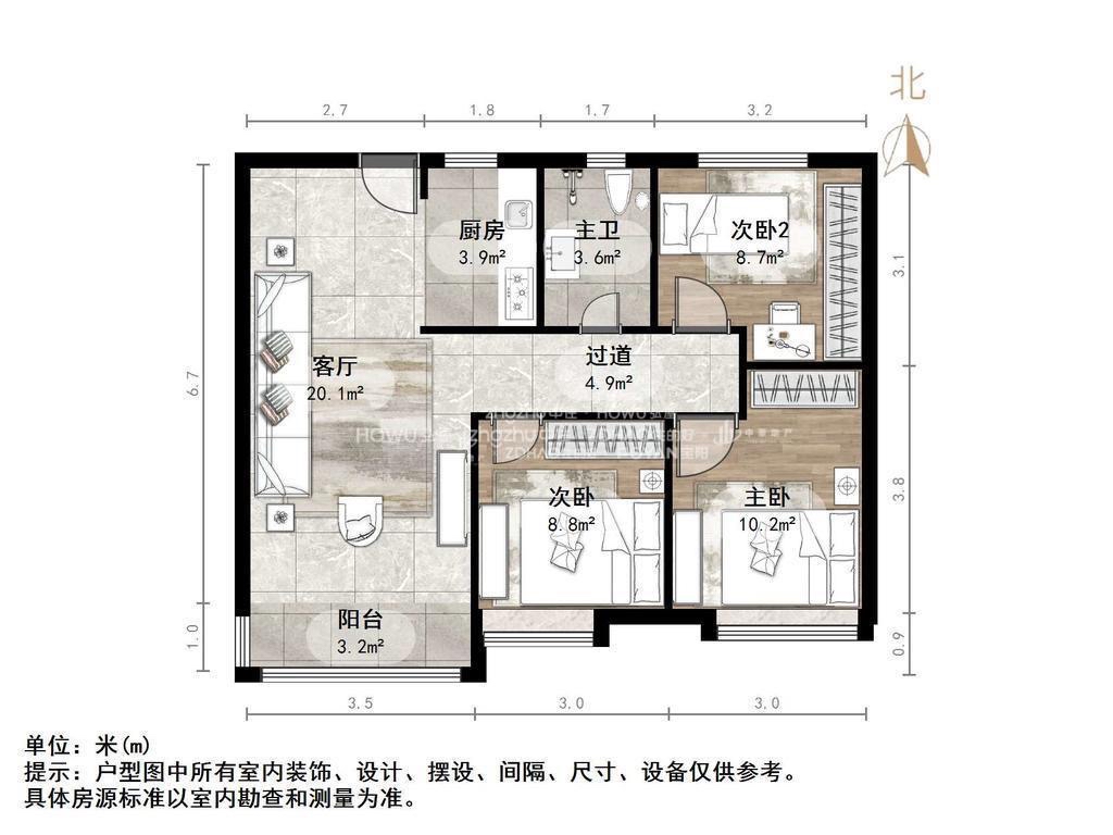 朝向南 建筑面积96.87㎡