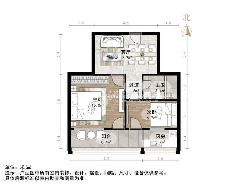 厅室2室1厅1卫1阳台