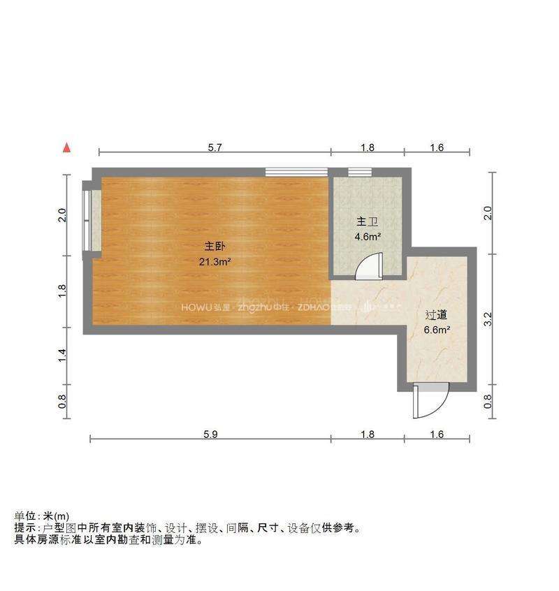 厅室1室1厅1卫1阳台