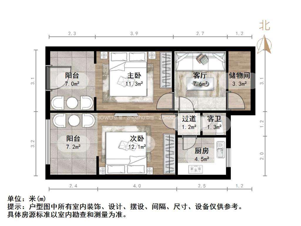 厅室2室1厅1卫1阳台