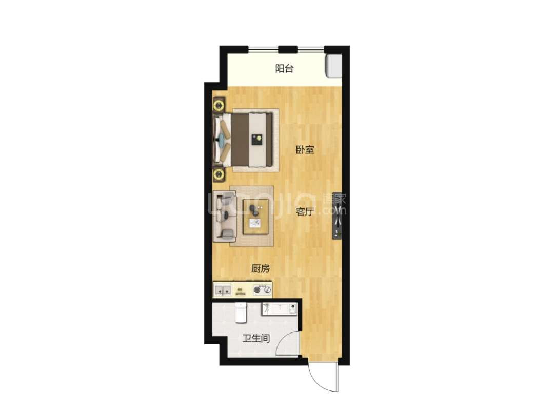 厅室1室1厅1卫1阳台