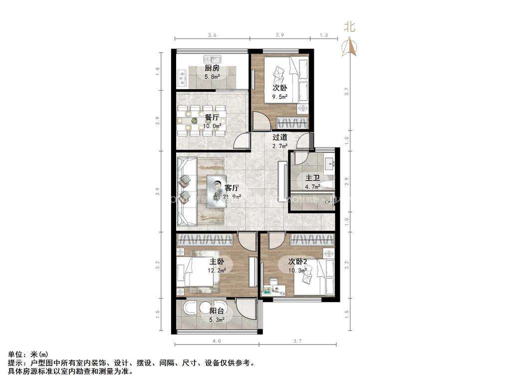 朝向南北 建筑面积104㎡