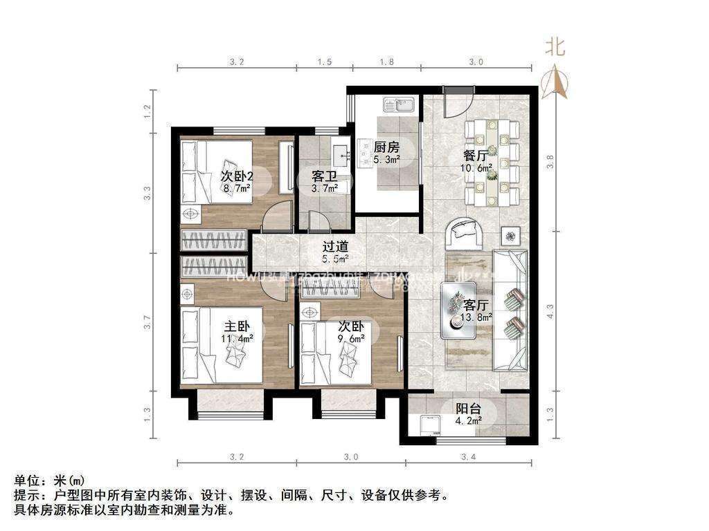 厅室3室2厅1卫1阳台