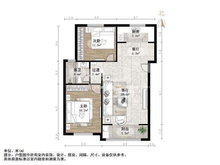 厅室2室2厅1卫1阳台