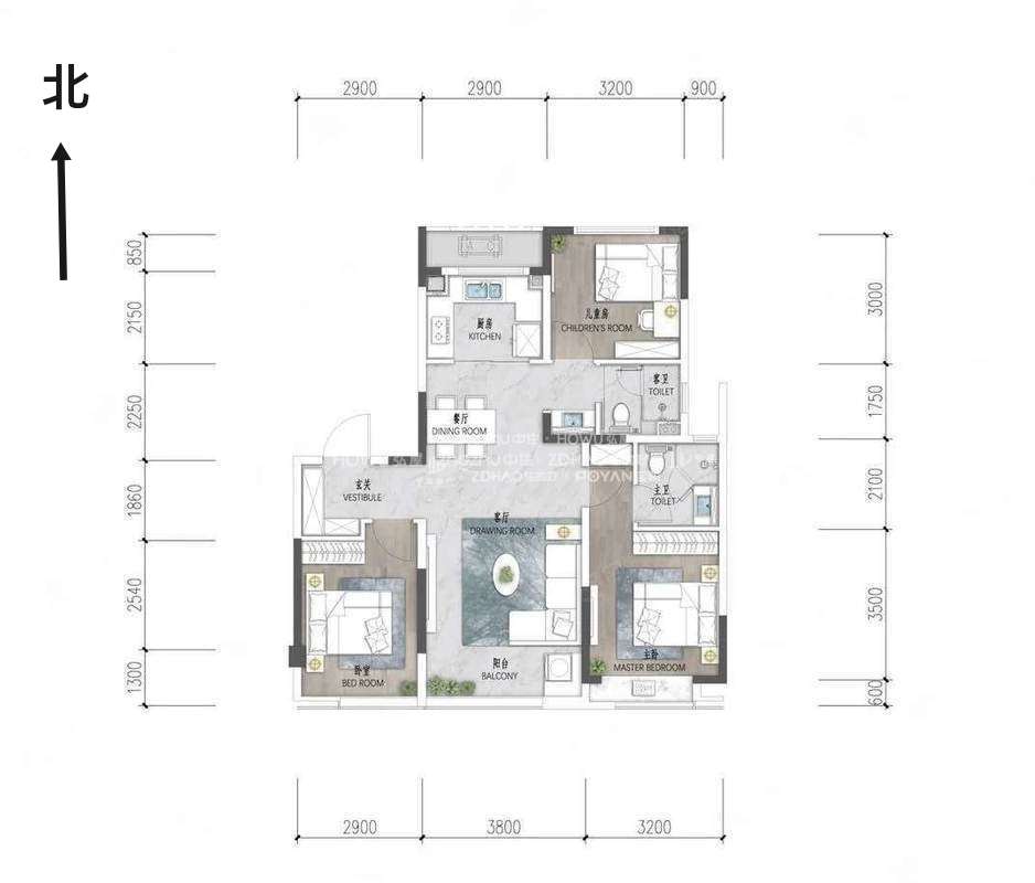 厅室3室2厅2卫1阳台