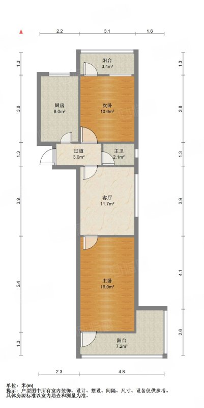 厅室2室1厅1卫1阳台