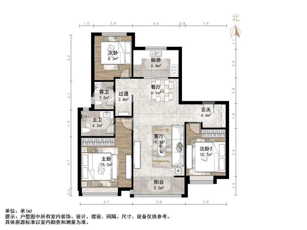 厅室3室2厅2卫1阳台