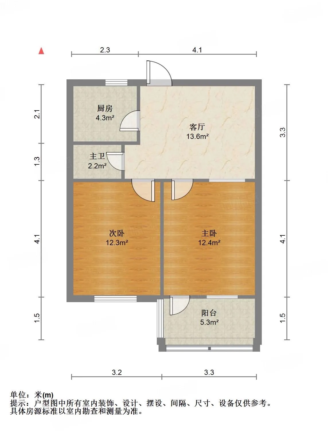 厅室2室1厅1卫1阳台