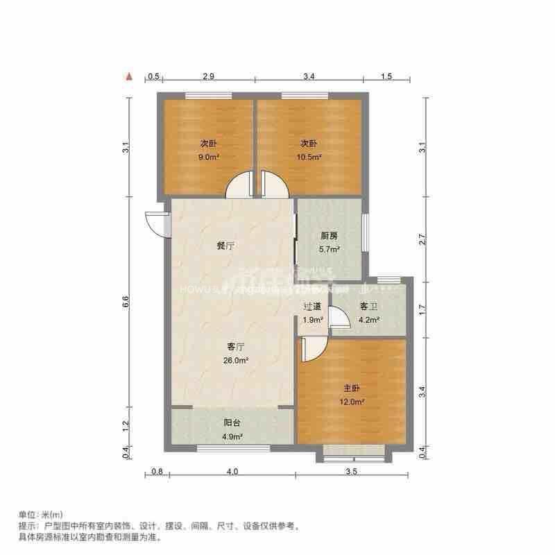 厅室3室2厅1卫1阳台