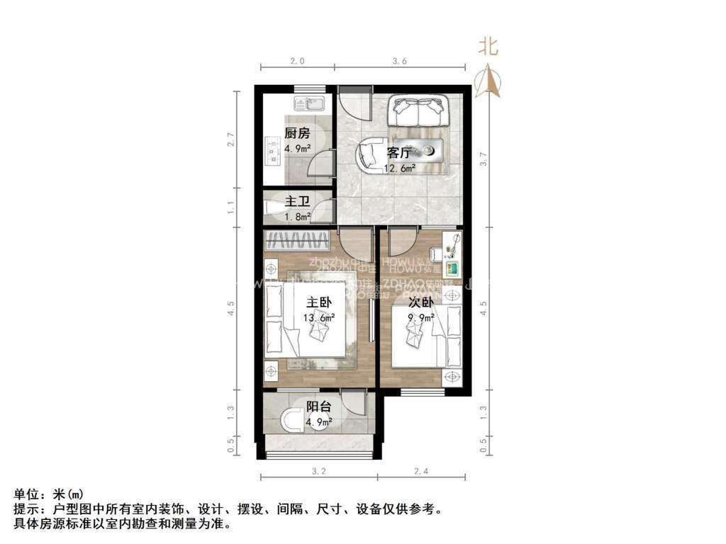 朝向南 建筑面积62㎡