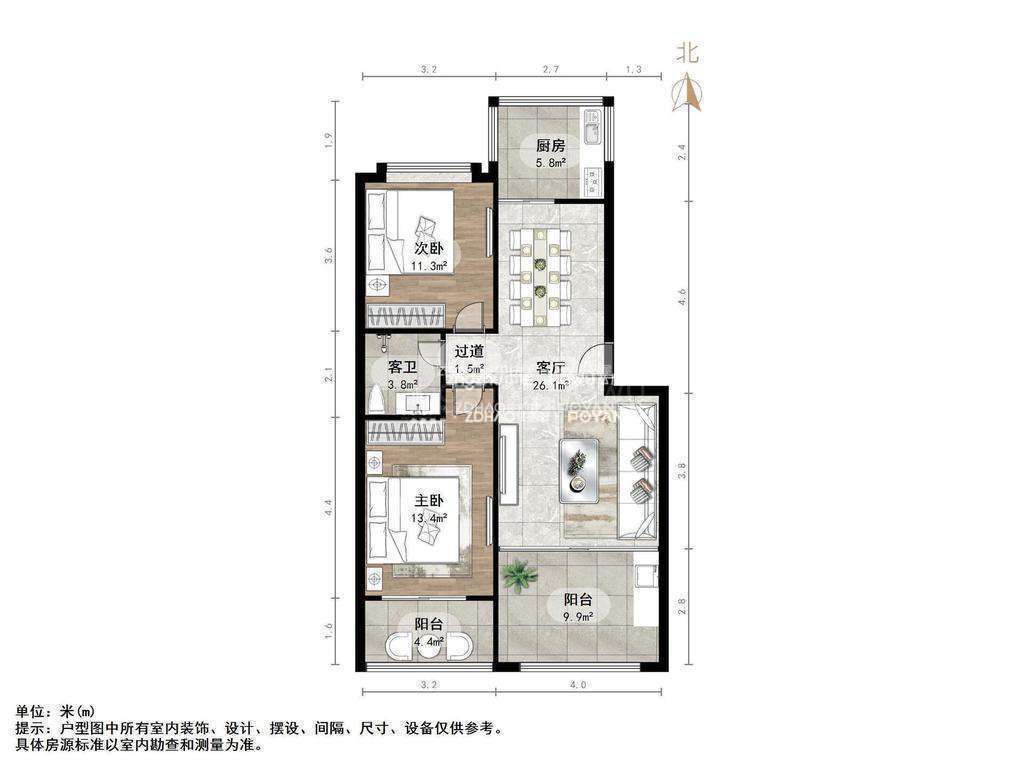 朝向南北 建筑面积101㎡