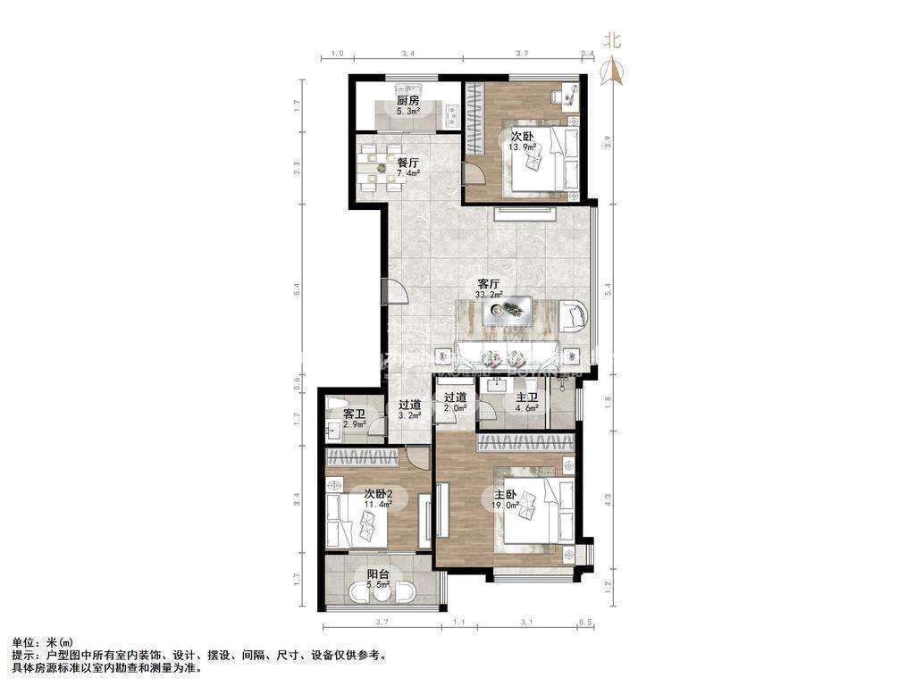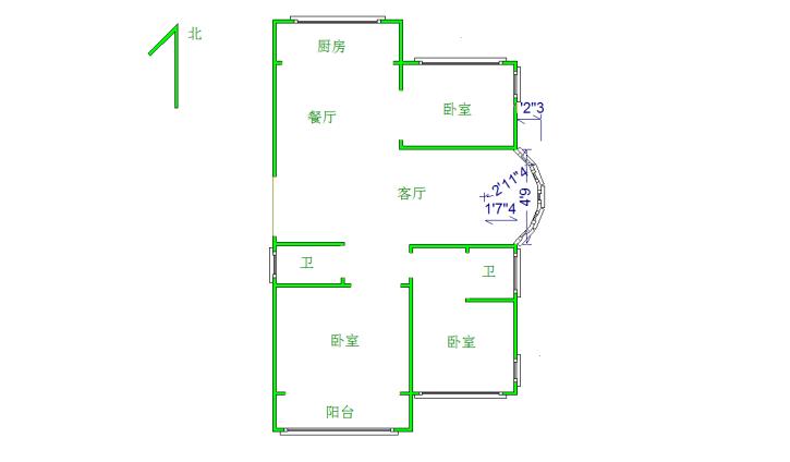 厅室3室2厅2卫1阳台