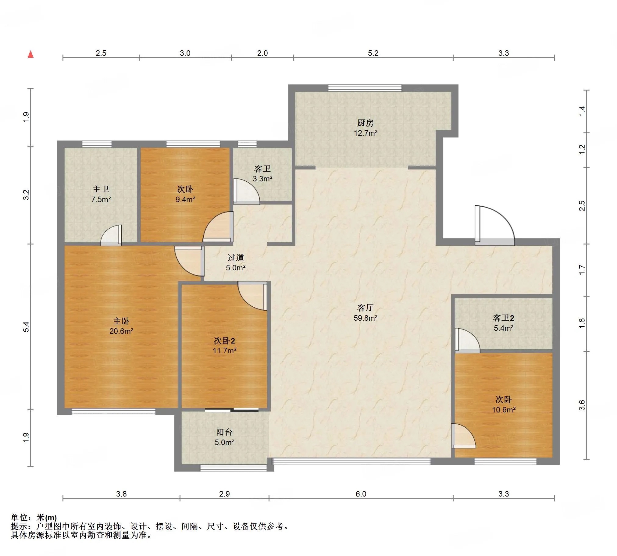 厅室4室2厅3卫1阳台