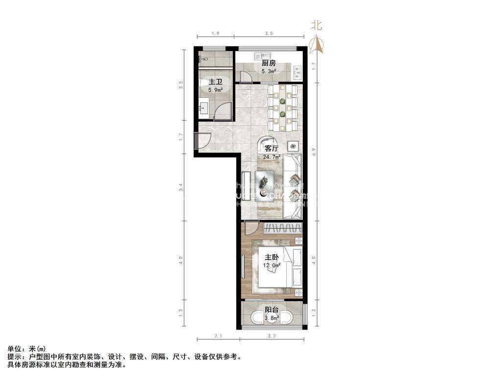 朝向南北 建筑面积70㎡