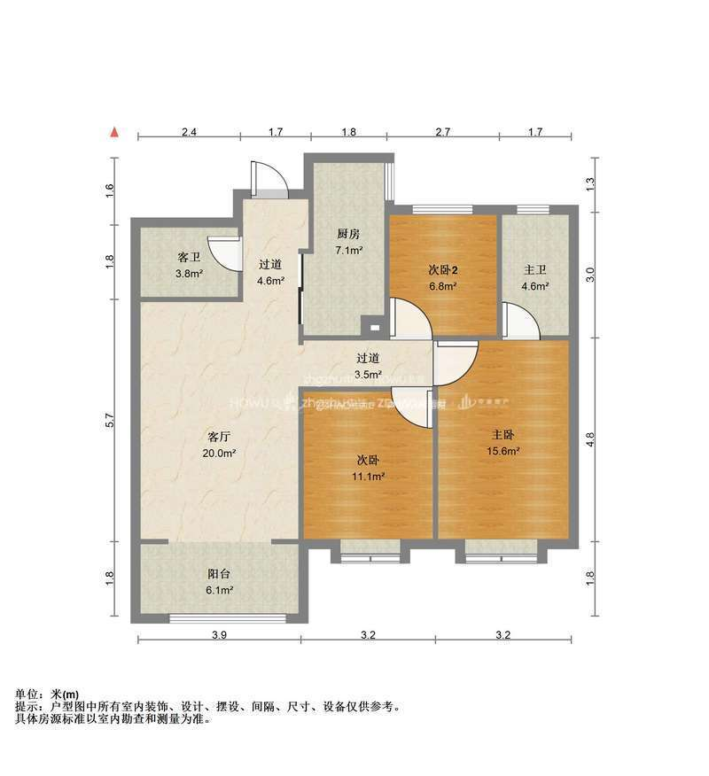 厅室3室2厅2卫1阳台