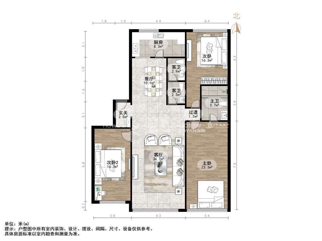朝向南北 建筑面积151.98㎡