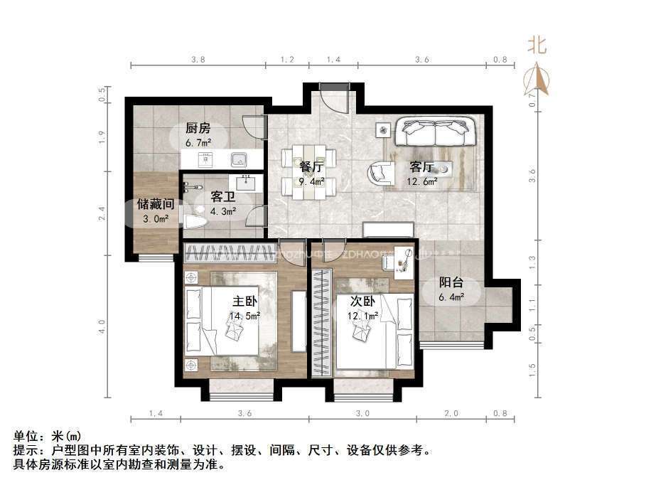 朝向南北 建筑面积87.77㎡