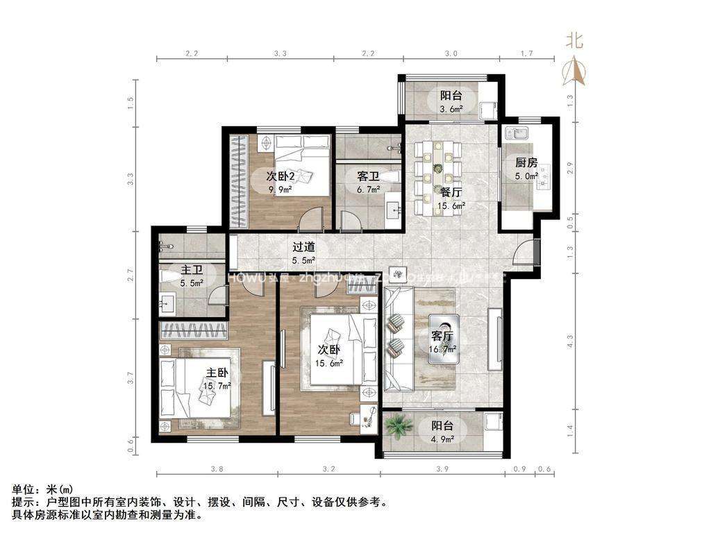 厅室3室2厅2卫1阳台