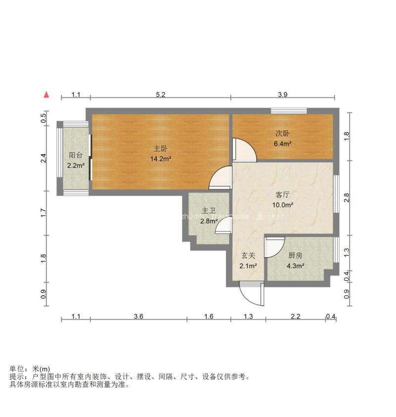 厅室2室1厅1卫1阳台