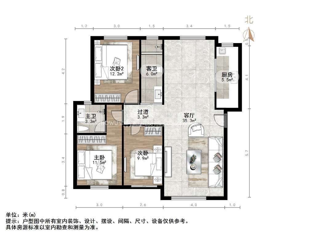 厅室3室2厅2卫2阳台
