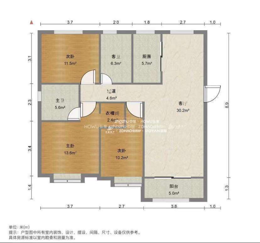 厅室3室2厅2卫1阳台