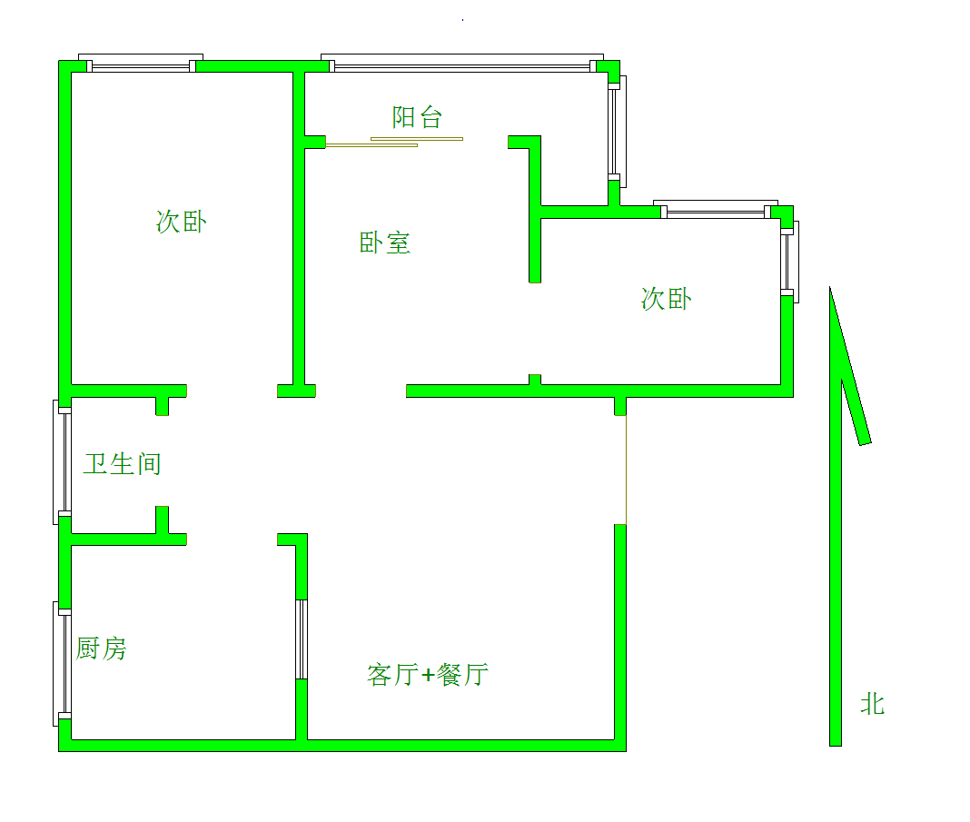 朝向南北 建筑面积60㎡