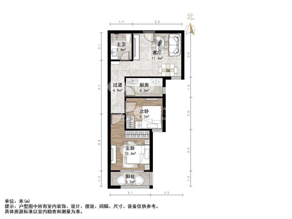 朝向南北 建筑面积60㎡