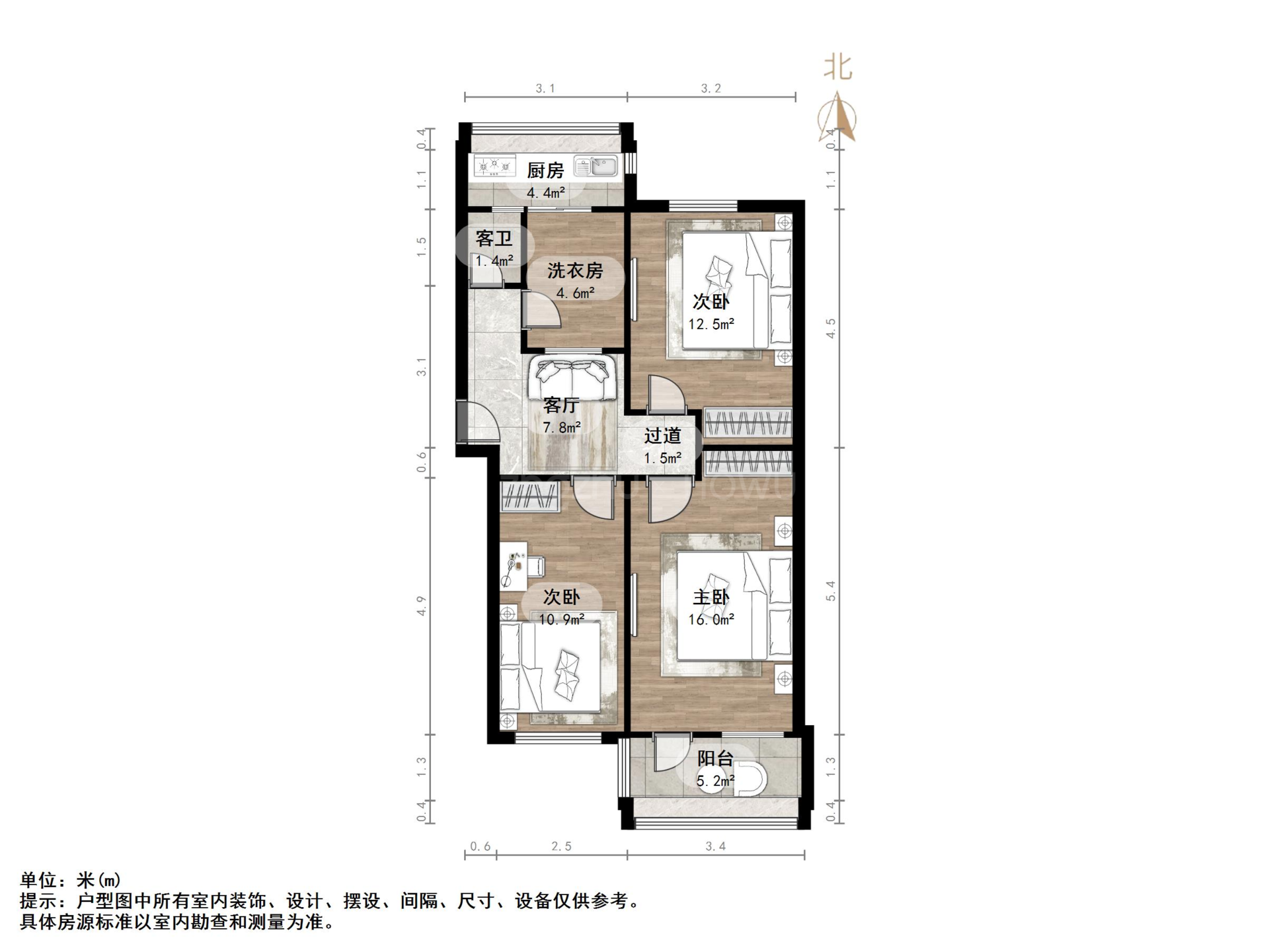 厅室3室1厅1卫0阳台