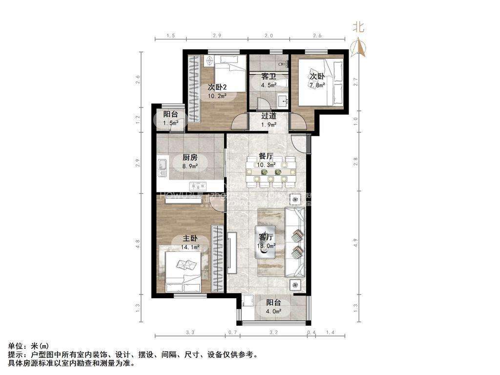 朝向南北 建筑面积120㎡