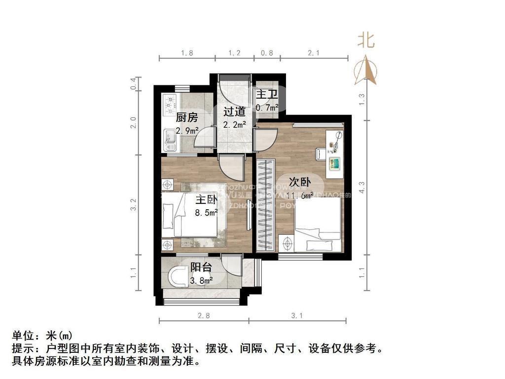 厅室2室0厅1卫1阳台