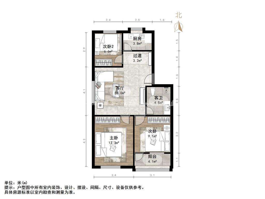 朝向南北 建筑面积74.75㎡
